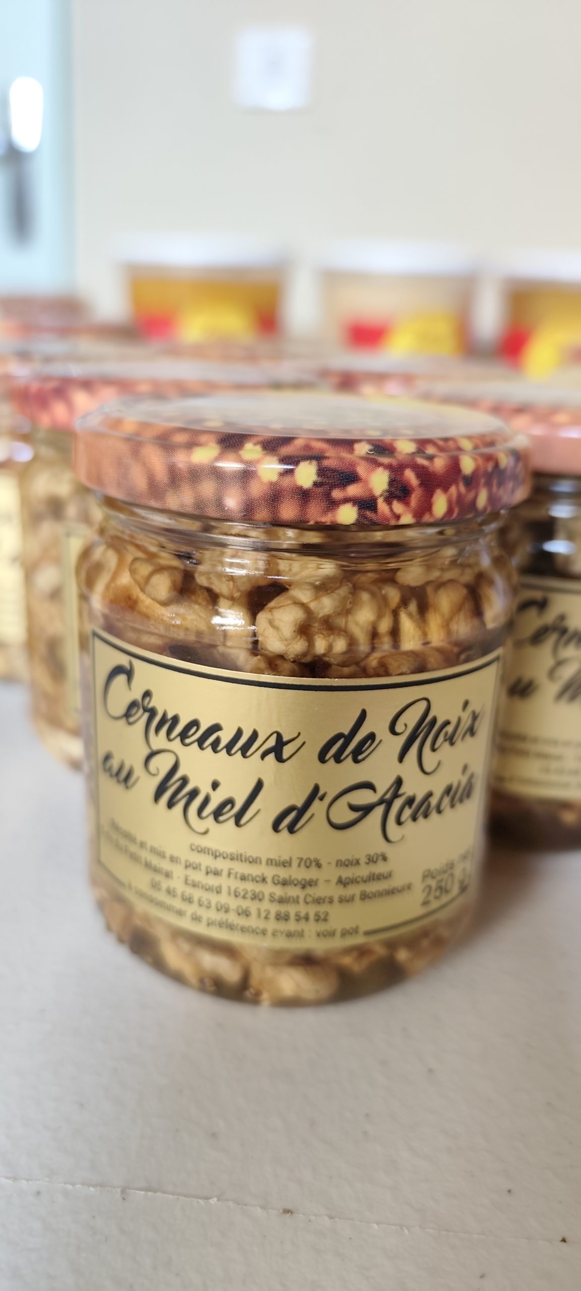 Cerneaux de noix au miel d’acacia disponible en pot de 250 grammes