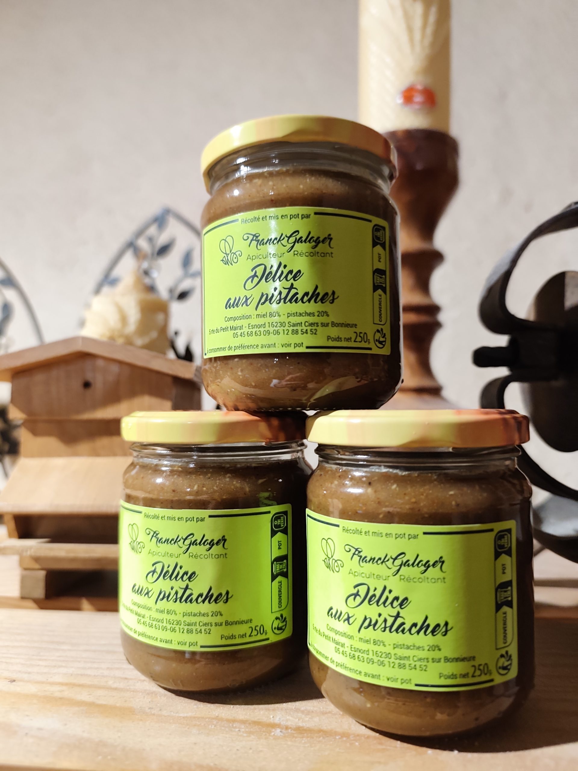 Délice aux pistaches disponible en pot de 250 grammes